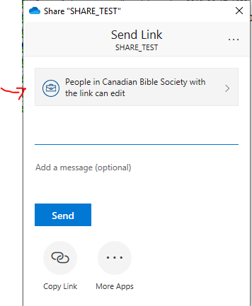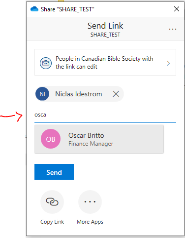 1) Type the name of people inside the organization you want to share the folder with and click on send.
