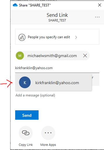 3) Type the email for each person you want to share this folder outside the organization and click Send: